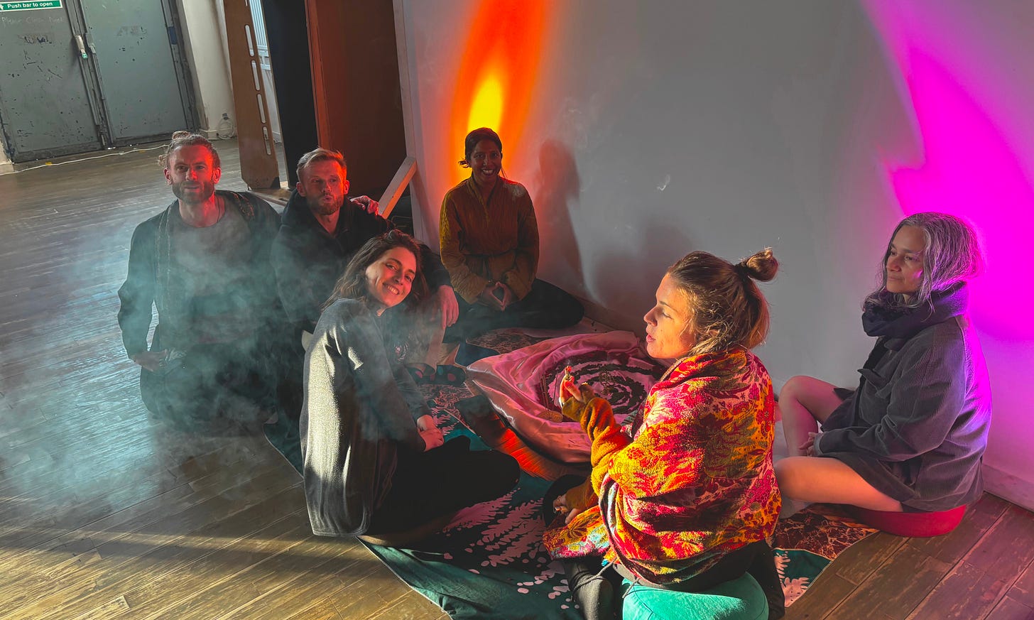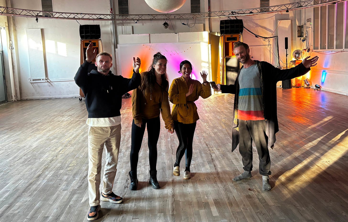 I stumbled into ecstatic dance (ED) around five years ago, right before COVID hit. For the last year, I’ve volunteered at a London dance, EDUK in Hackney Wick. It’s a great dance, with lots of international DJs each coming with their own vibe. What’s the music like? It’s a wild ride across all genres. Slow ambient openers help you to connect to yourself more deeply. Tribal house groovers get you moving. Then it explodes into drum ‘n’ bass or psytrance, to really push you to your limits. You come out sweaty, smiling, and happy. There are no judgments on how you dance, what you look like, or if you like dancing alone or with others. Just pure, open exploration.