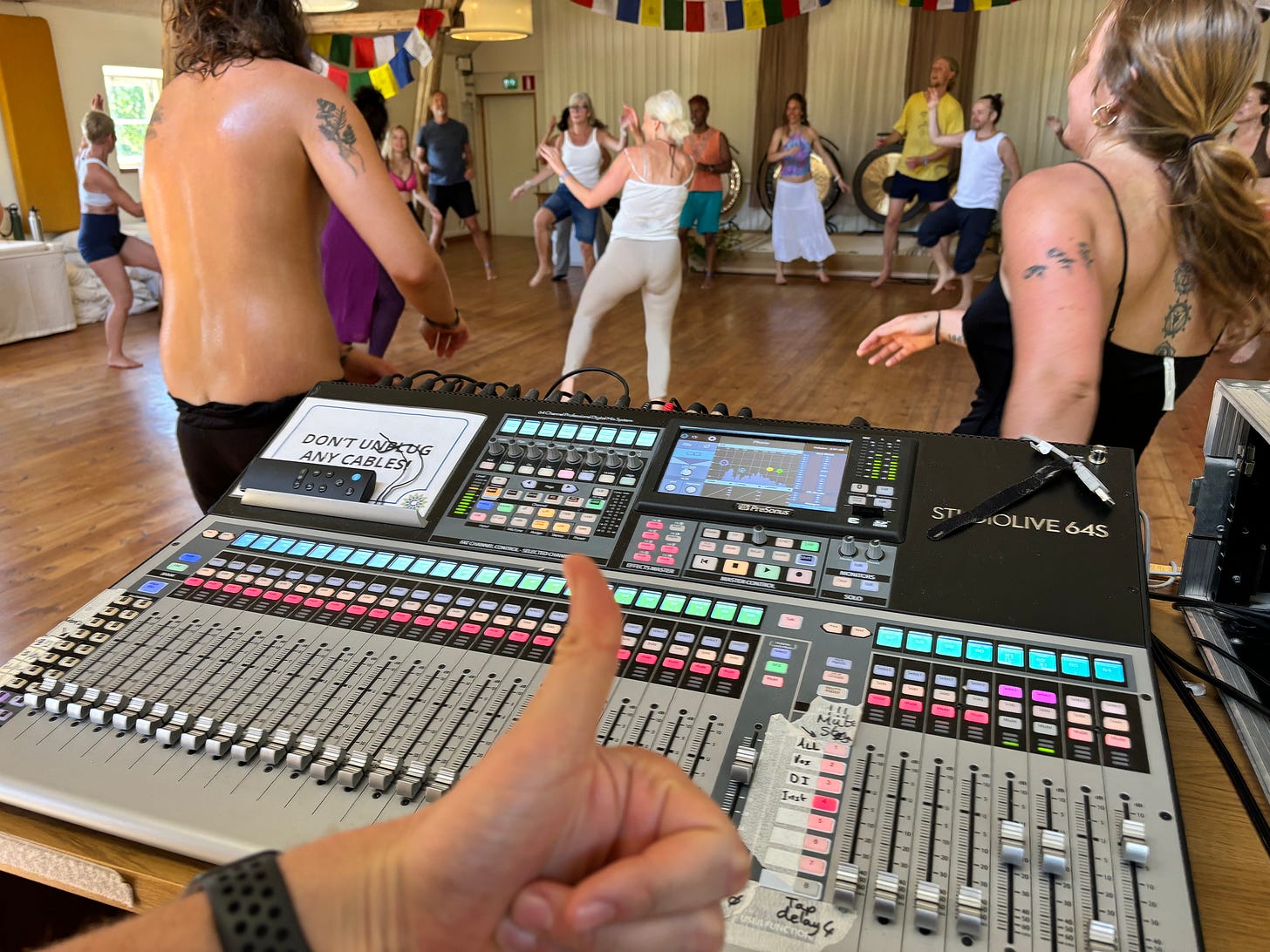 I didn’t want to call anyone or do anything. I didn’t know what was going to happen, but I knew I had to get to Ängsbacka. I remember placing a few stones on this rock and remembering where it was as I said to myself, “I’m going to meditate here and become my own rock.” Over the course of about an hour of vertical to horizontal movements, I made my way to Ängsbacka and met the team lead, Mark. He was a legend. Completely understanding, “take as long as you need” type guy. The snag? The sound and light team hauls speakers and spotlights around the festival site like nomadic roadies, which demands standing and lifting—skills I’d now written off! There was one thing I could do—cables! I became the cable guy; along with a portable mattress squeezing in 2-5 minutes of heroic untangling before mandatory lie-downs. At least I was present, pitching in, and fooling myself into thinking I was useful.
