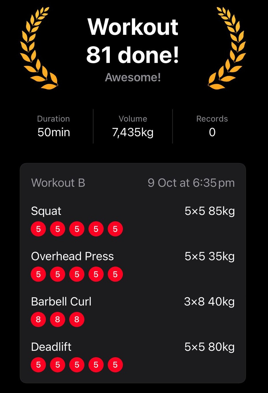 I picked up an app called StrongLifts (which I really recommend); I had some video calls with Tente at the gym to ensure my technique was right, and I started. Almost everyone starts the gym in the same way. You start out full of enthusiasm; 5 times a week is easy! You push yourself pretty hard; you get into some form of DOMS, delayed onset muscle soreness; then you slow down and sometimes drop out completely. While I had my ups and downs, I twinged my back fully once and needed to reset, however I was now fully mobile and walking fine again. Over the last 12 months, I’m proud to say I’ve done 81 gym sessions. Those sessions got progressively larger; the weights got bigger, and my back pain started to fade.